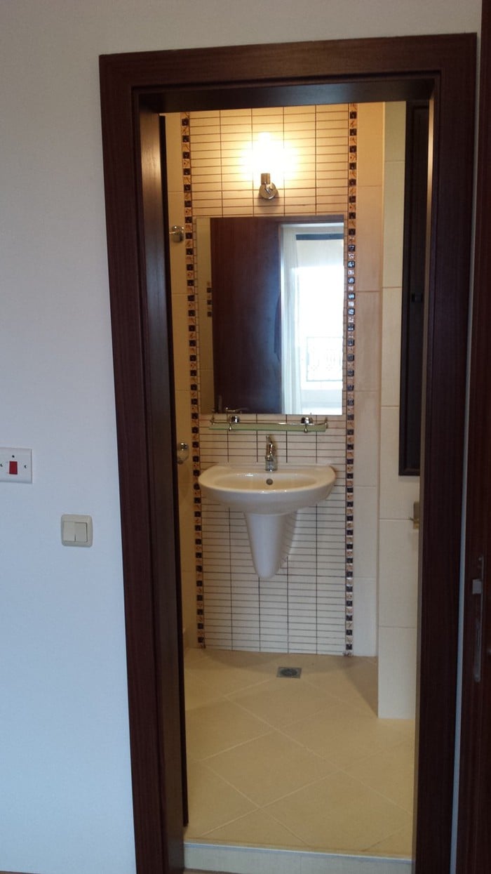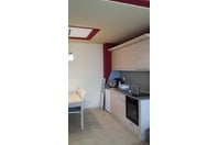 This is a spacious 2-bedroom property that enjoys not one bathroom, but two in that there is a separate en-suite bathroom with sink, toilet plus full shower. Another nice feature of this property is the extremely large covered balcony with a fully-tiled floor plus dual access in that it may be accessed from the master bedroom as well as the main living area. Speaking of the main living area, it is open-plan design as one would expect for a holiday home of this type, with a very contemporary modern kitchen-cum-dining area that is part recessed from the rest of the living/TV room, plus it has an attractive overlight in the ceiling. The kitchen itself is compact and functional with stainless steel sink/drainer as well as electric oven/hob and an integrated refrigerator. The light wood-effect cabinets in the kitchen area are contrasted nicely by the two-tone wall colourings of white & burgundy. There is also a lighter coloured floor tile in the recessed kitchen-dining area which also includes a light wooden table with chairs for 4 persons. The rest of the main living space is also very contemporary with a distinctively Scandinavian furniture style including open wall shelves and TV stand along one wall with a dark wood backing, all complimented by cream coloured square-style sofa and chairs and matching coffee table. There is a large sliding double-glazed door from this sitting room to the main part of the outside balcony. The main bathroom is fully-tiled and includes a large corner shower unit. It is a very clean look with the added advantage of being minimum maintenance too. Both bedrooms have large double-beds with dark wooden headboards with matching bedroom furniture and cabinets. The master bedroom also has a nice dark wooden dressing table too, with some additional matching wall shelves plus integrated vanity mirror. A lot of thought has gone into the furniture pack for this particular property and as we mentioned before this apartment is as new being totally unused to date. A property of this size would ideally suit a small family or up to 6 persons sharing when additional sofa-beds or airbeds are factored into the equation. This is a wonderful apartment in a low-denisty resort close to the beach and benefitting from dozens of sporting activities and amenities, so it would make for a fantastic holiday home, plus it ought to have potential too as a rental property.