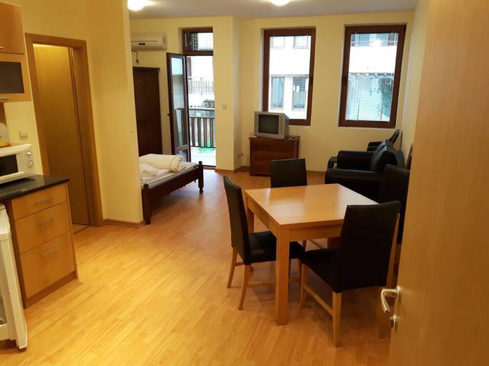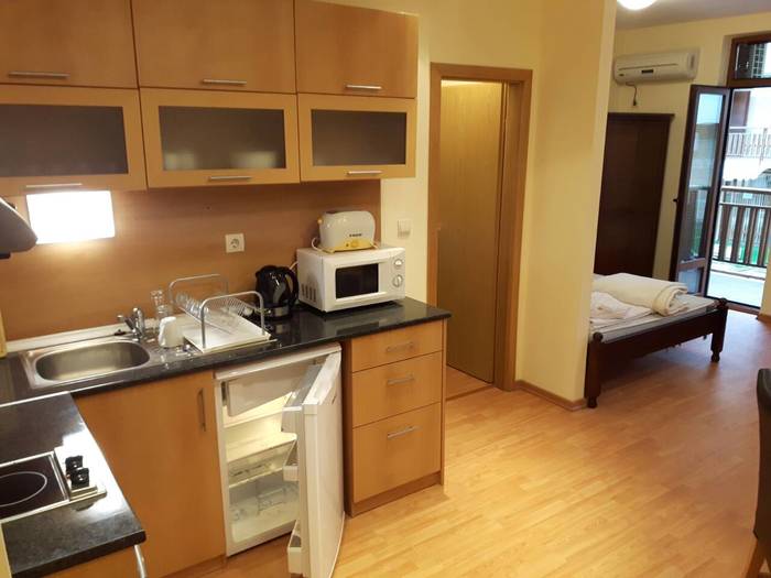 This 42 square metre studio property offers exceptional value for money. As the new owner you will be gaining access to the same location and facilities (see below for additional background information) as somebody else who paid a multiple of this price for a larger property within the same development. This wonderful holiday property on the Black Sea coast is ideal for a couple who want a zero hassle holiday home. Garden of Eden is one of the most highly regarded in this region, thus is in high demand (especially for the smaller properties within this particular development). At 42 square metres of internal floor space, this particular apartment is ideal for a couple or small family. There is a compact kitchen for self-catering as well as a fully-tiled bathroom with bath tub. Like many properties on the Bulgarian coast it is laid out in an open-plan design to maximise the feeling of space, whilst simultaneously providing its residents with the facilities that they need and of course with the minimum amount of maintenance to ensure that the owner spends the majority of their time enjoying the facilities that this wonderful complex has to offer. The property has a separate boiler room/storage cupboard that may be used for items such as ironing boards as well as luggage cases etc. The decor is extremely bright, neutral and very clean-looking and is complimented by the wood effect laminate flooring and the colour-coordinated kitchen cabinets and dining suite. This property is well laid out, is in pristine condition and overall makes for a very pleasant ambience indeed.